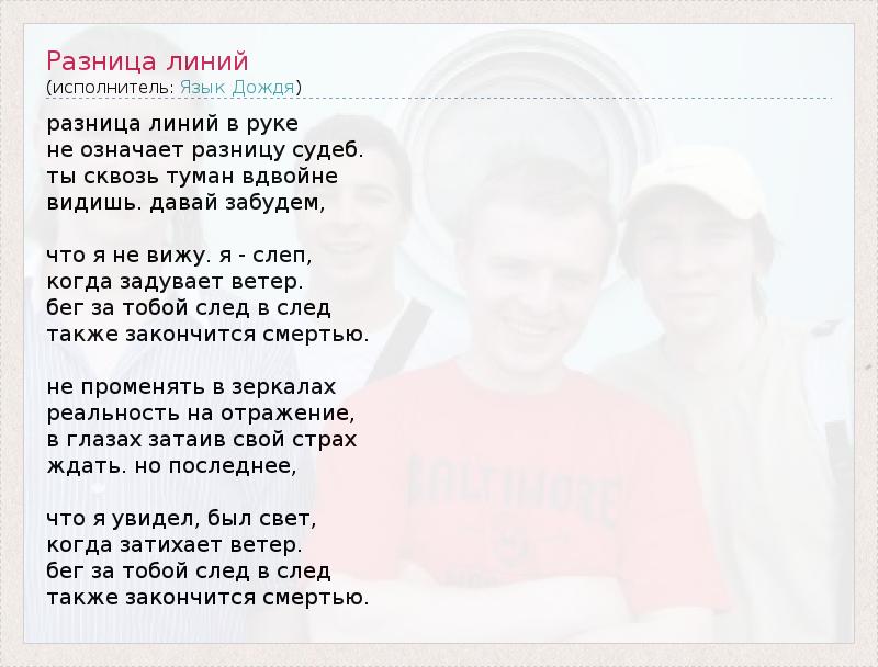 А как ты думаешь, о чем песня "Разница линий" ?