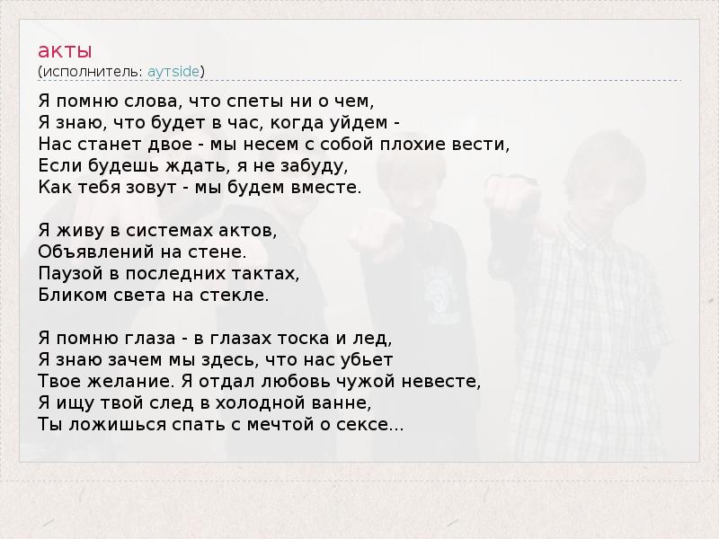 А как ты думаешь, о чем песня "акты" ?