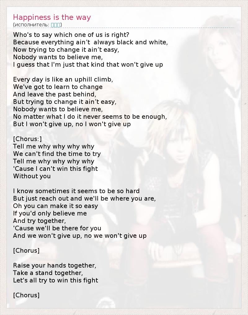 А как ты думаешь, о чем песня "Happiness is the way" ?