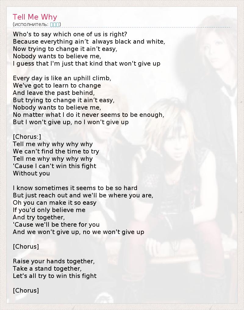 А как ты думаешь, о чем песня "Tell Me Why" ?