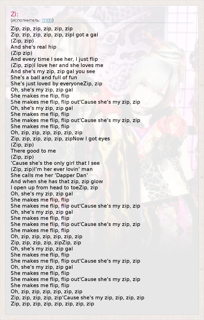 She makes me flip, flip out'Cause she's my zip, zip