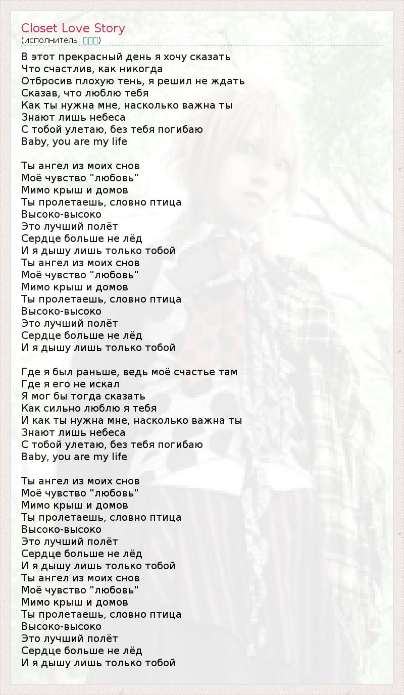 А как ты думаешь, о чем песня "Closet Love Story" ?