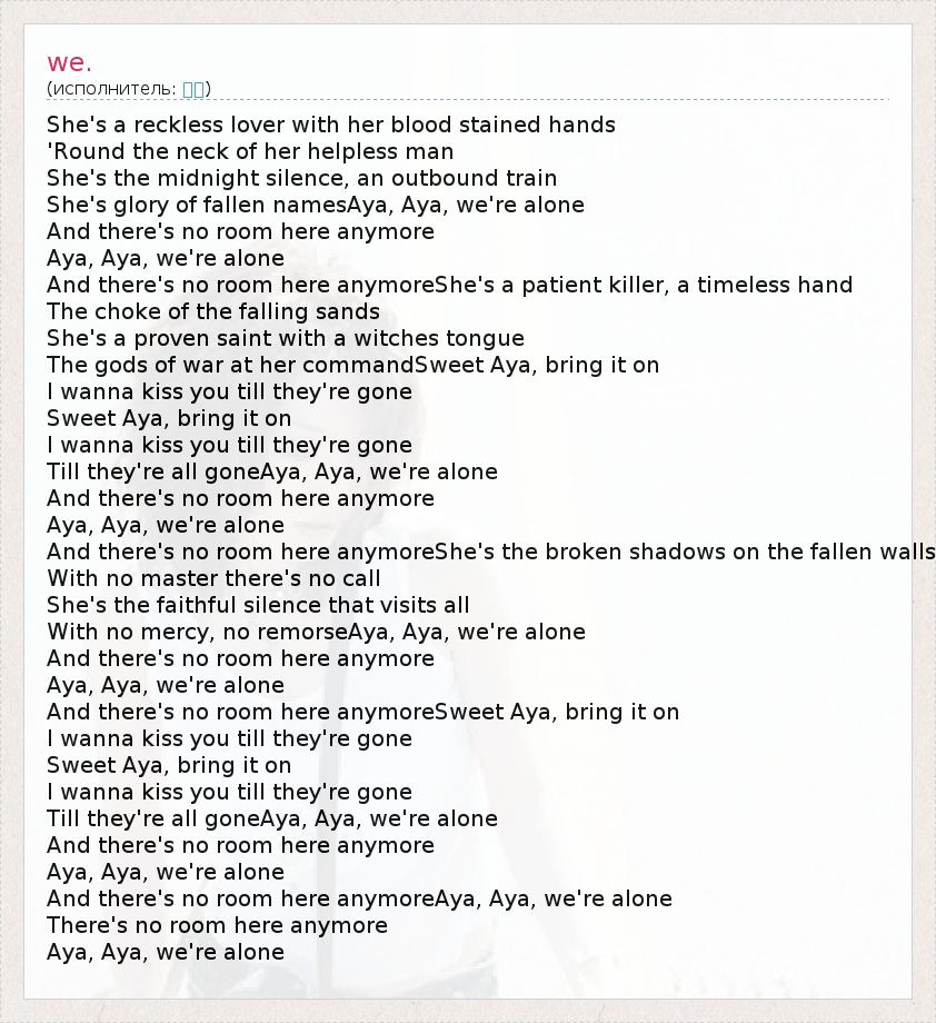 And there's no room here anymoreAya, Aya, we're alone