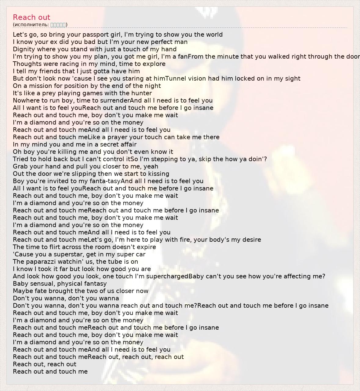Reach out and touch meLet's go, I'm here to play with fire, your body's my desire