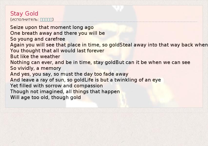 А как ты думаешь, о чем песня "Stay Gold" ?