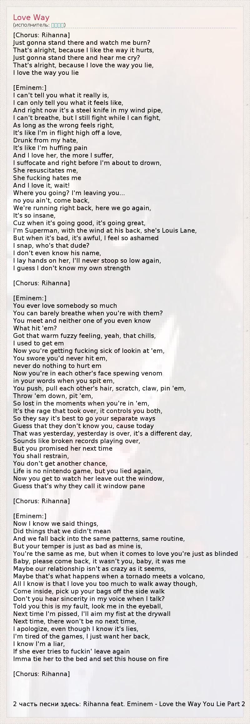 2 часть песни здесь: Rihanna feat. Eminem - Love the Way You Lie Part 2