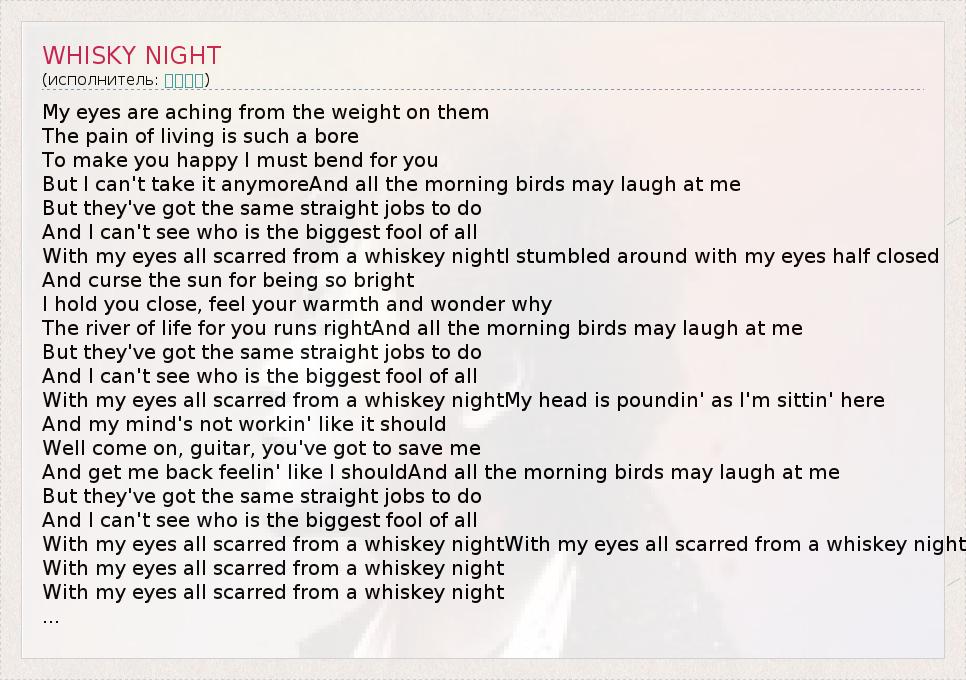 А как ты думаешь, о чем песня "WHISKY NIGHT" ?