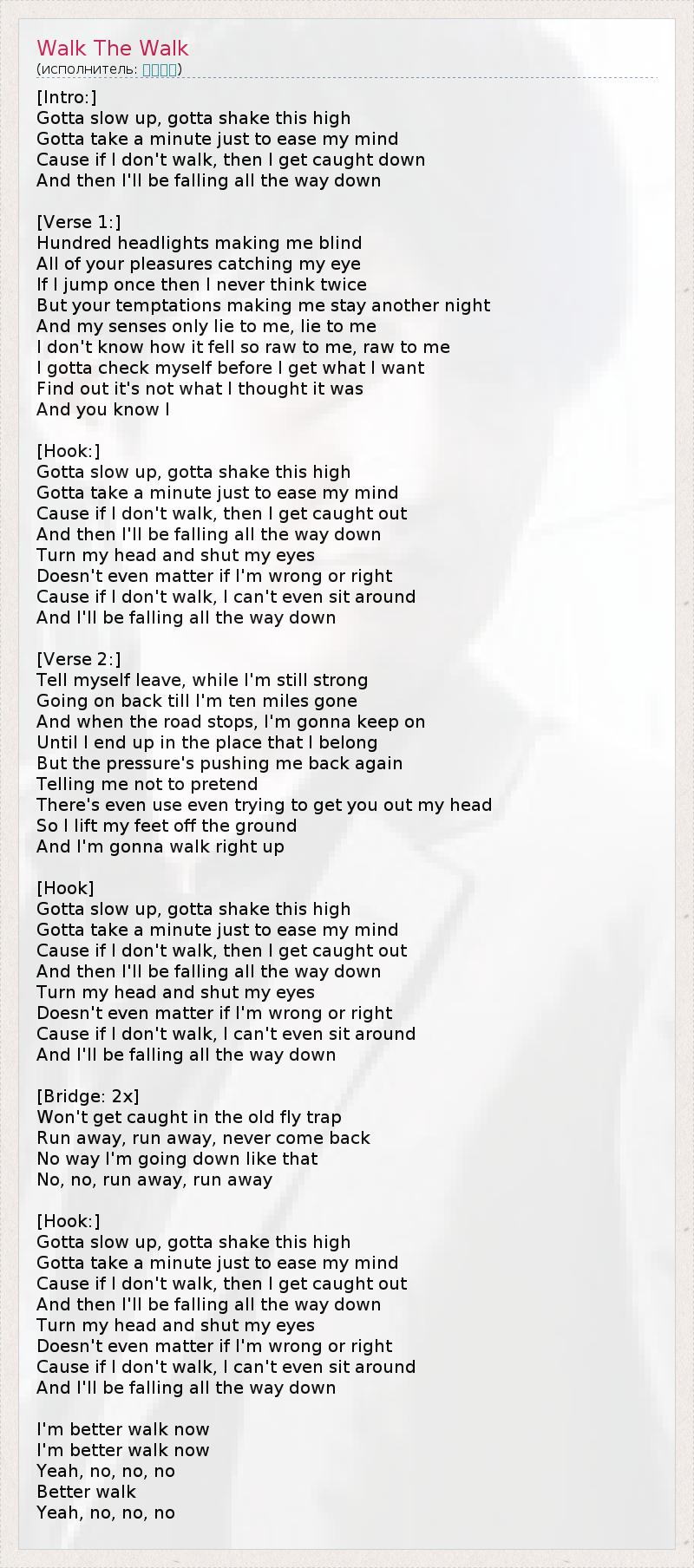 А как ты думаешь, о чем песня "Walk The Walk" ?
