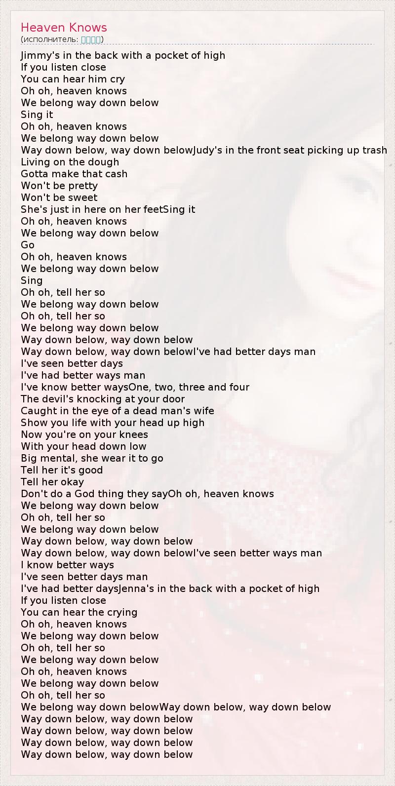 А как ты думаешь, о чем песня "Heaven Knows" ?