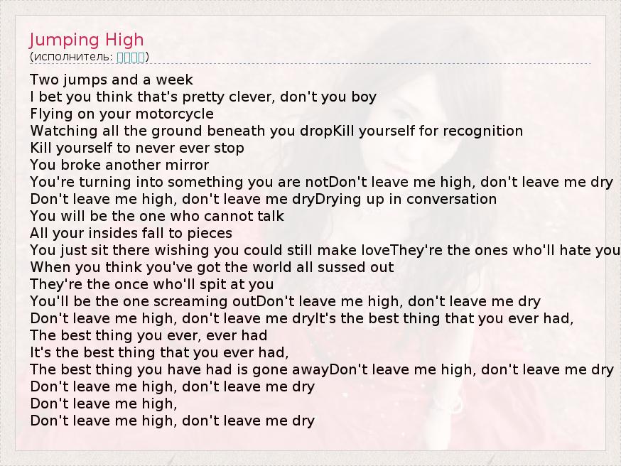 А как ты думаешь, о чем песня "Jumping High" ?