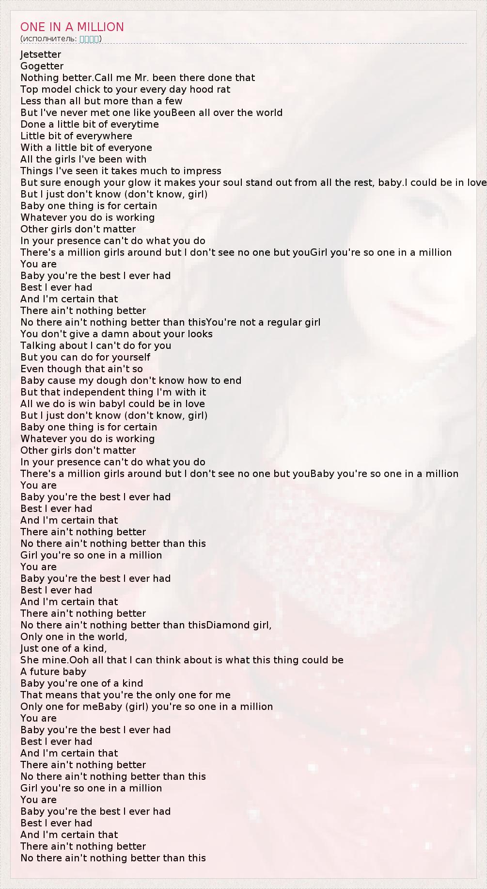 А как ты думаешь, о чем песня "ONE IN A MILLION" ?