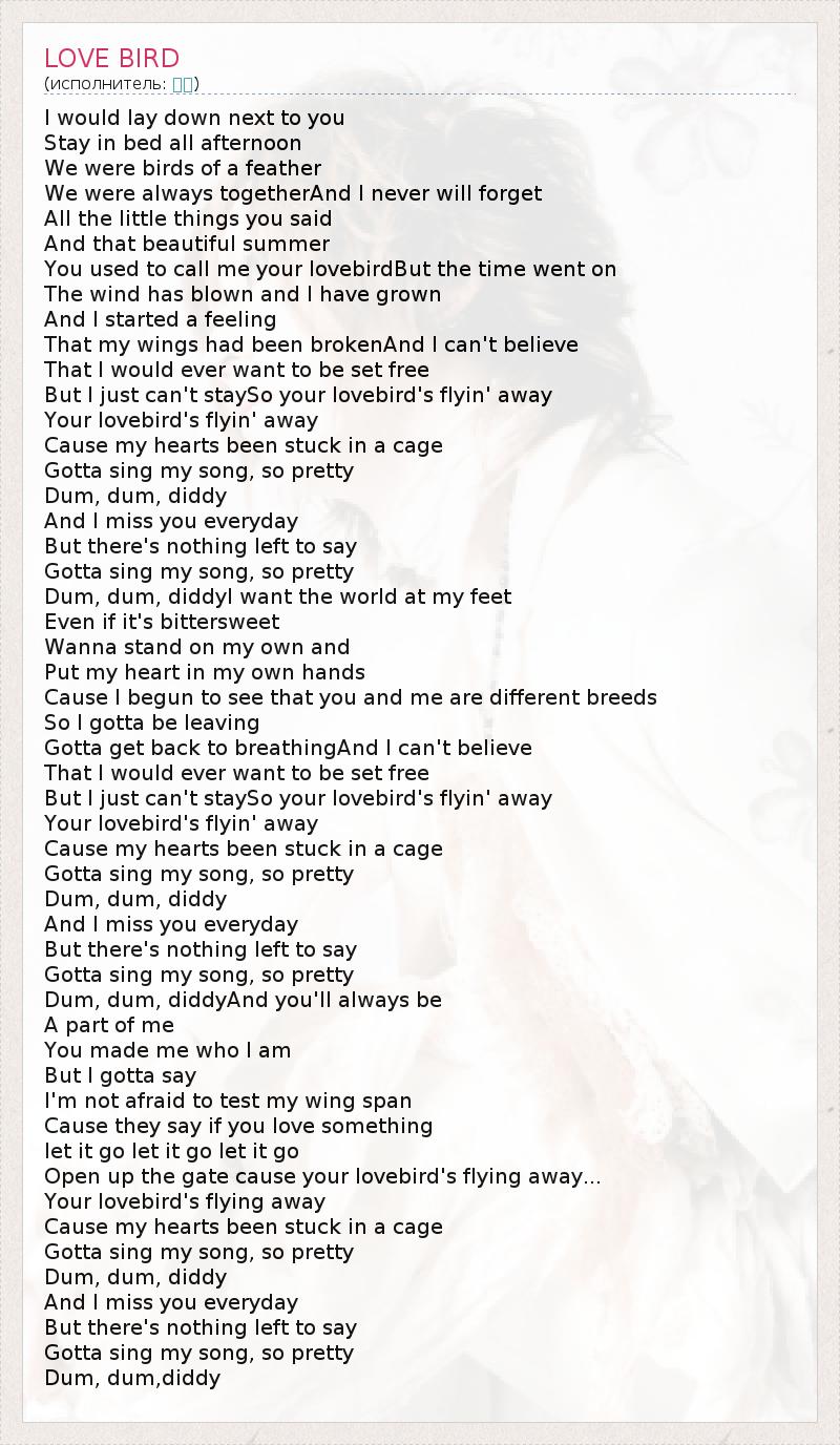 А как ты думаешь, о чем песня "LOVE BIRD" ?