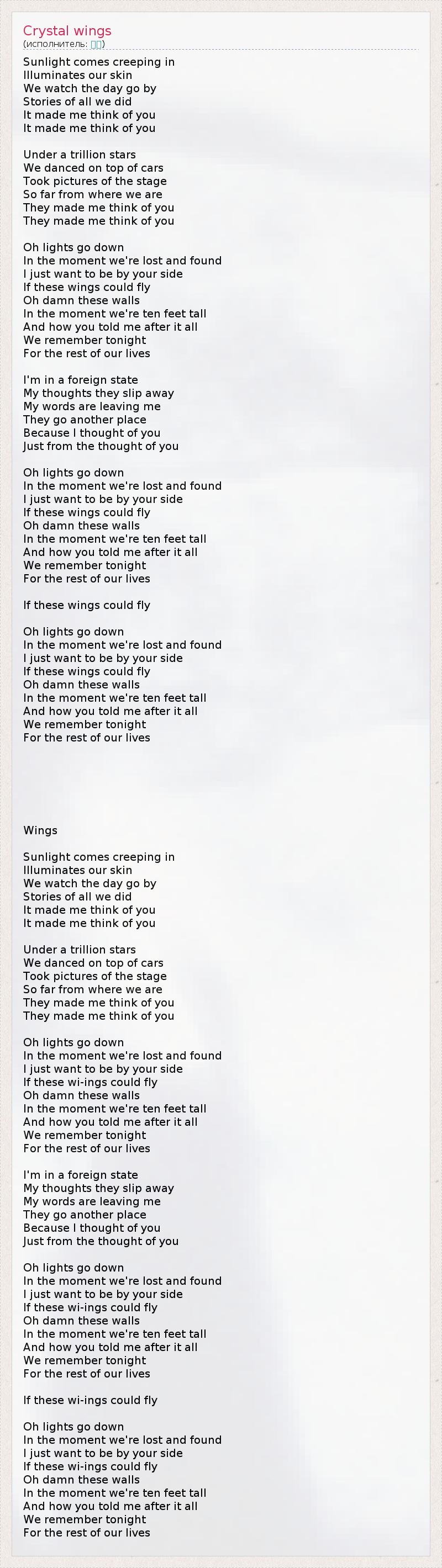 А как ты думаешь, о чем песня "Crystal wings" ?