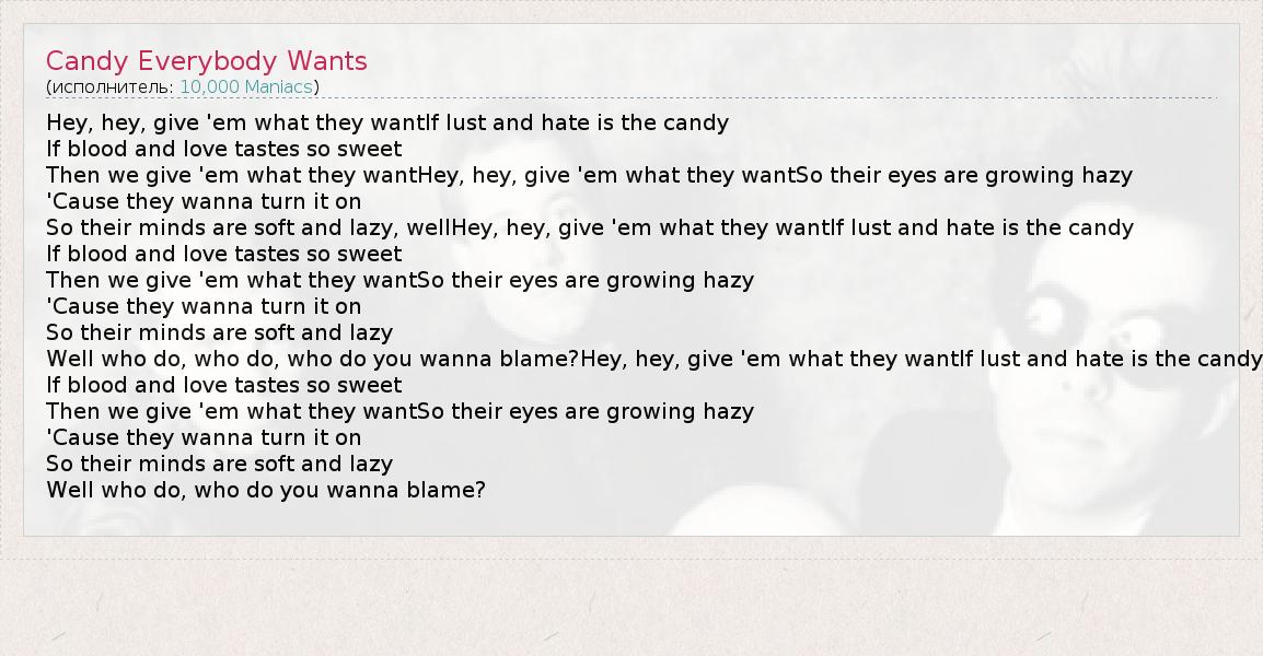 А как ты думаешь, о чем песня "Candy Everybody Wants" ?
