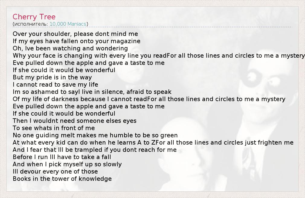 А как ты думаешь, о чем песня "Cherry Tree" ?
