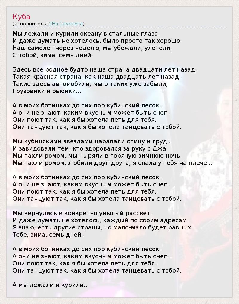 А как ты думаешь, о чем песня "Куба" ?