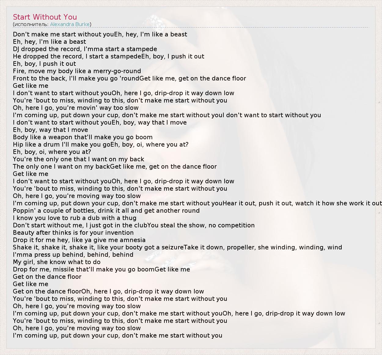 А как ты думаешь, о чем песня "Start Without You" ?