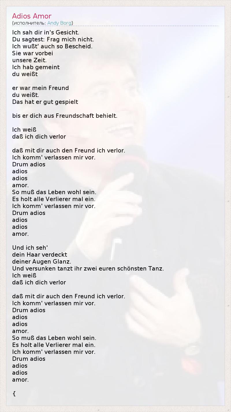 А как ты думаешь, о чем песня "Adios Amor" ?