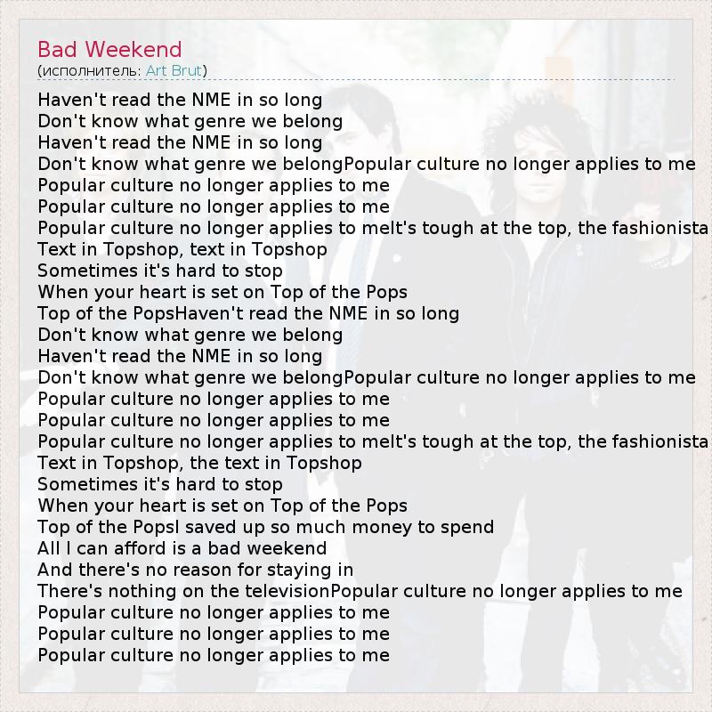 А как ты думаешь, о чем песня "Bad Weekend" ?