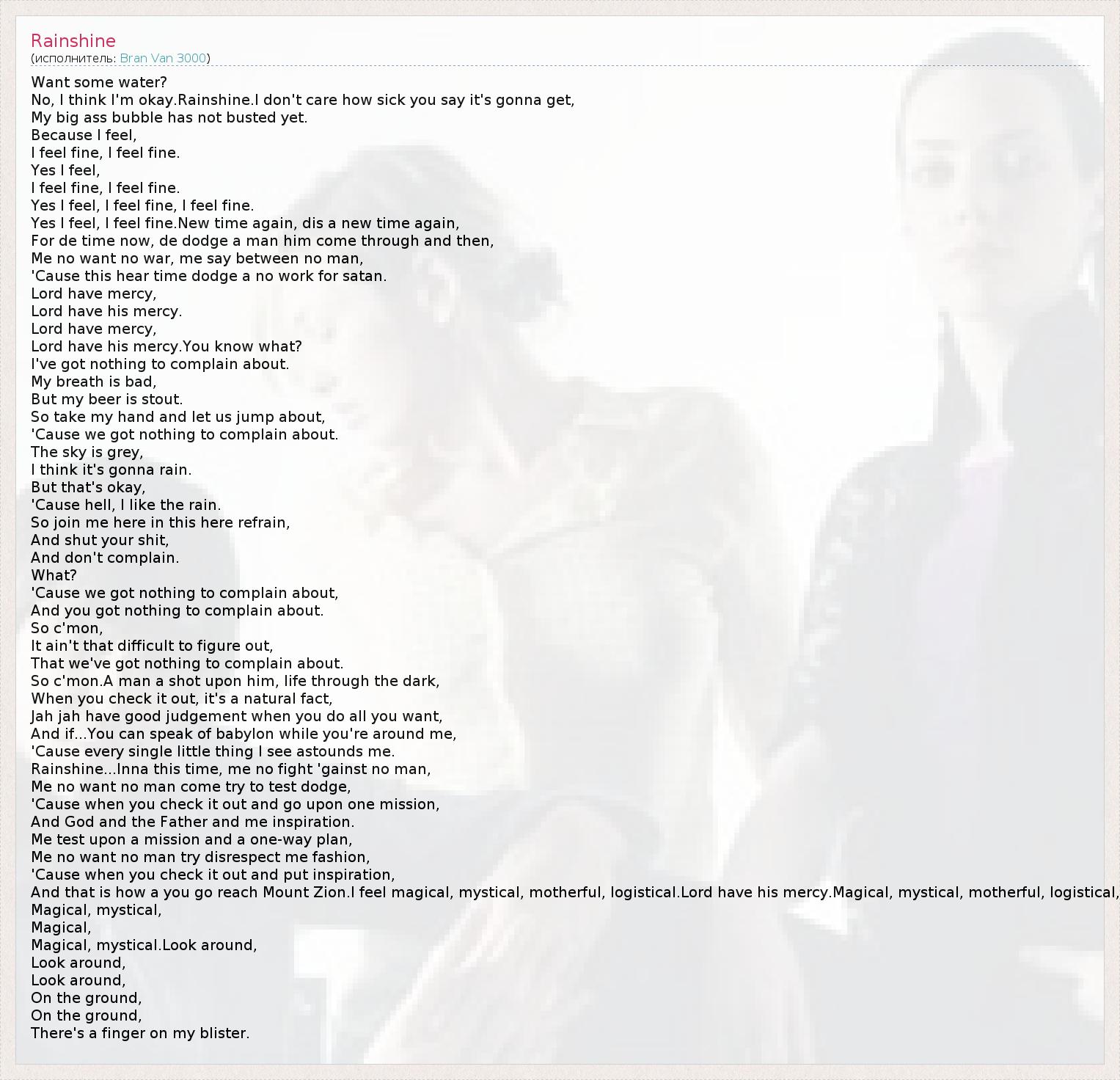 Rainshine...Inna this time, me no fight 'gainst no man,