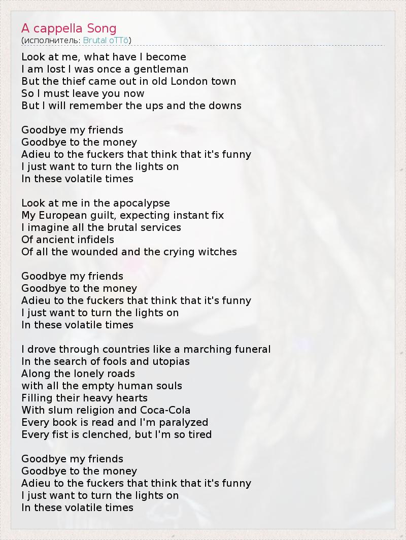 А как ты думаешь, о чем песня "A cappella Song" ?