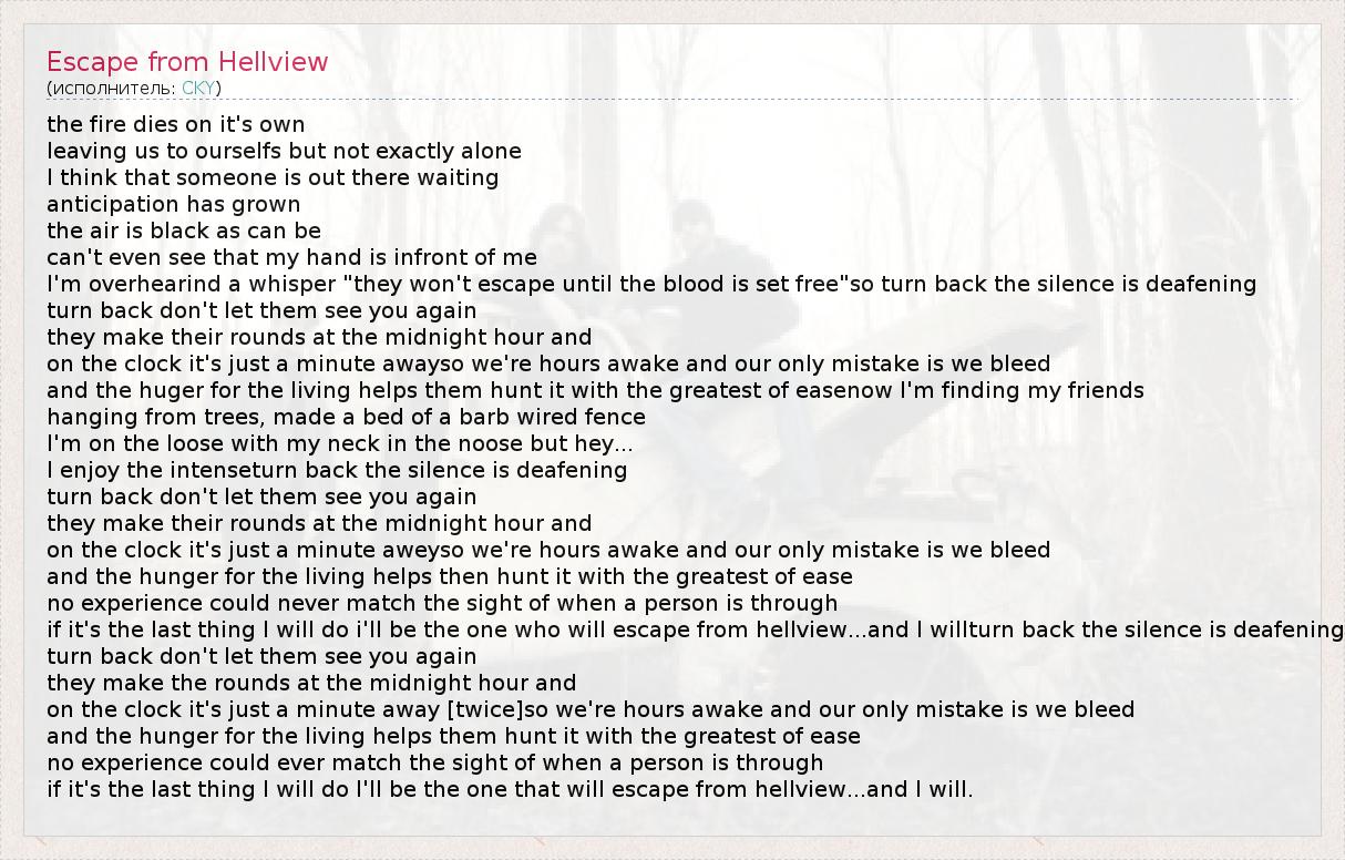 ГлавнаяИсполнителиCKYEscape from Hellview
