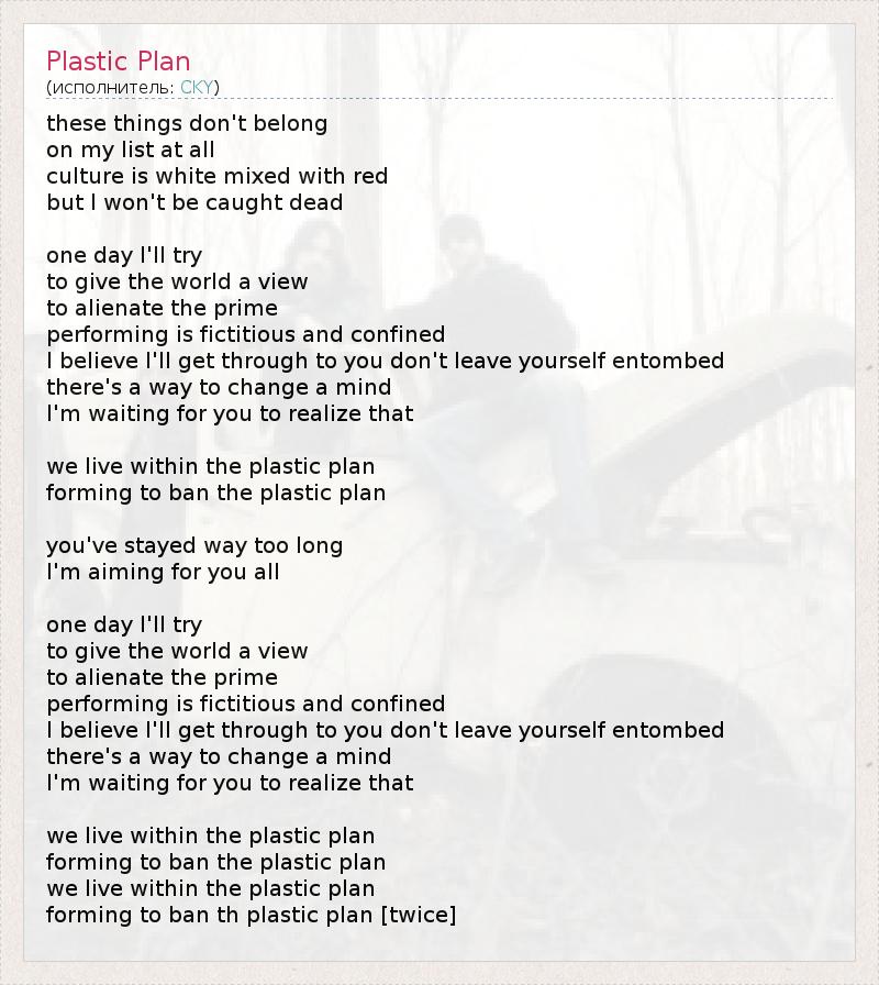 А как ты думаешь, о чем песня "Plastic Plan" ?