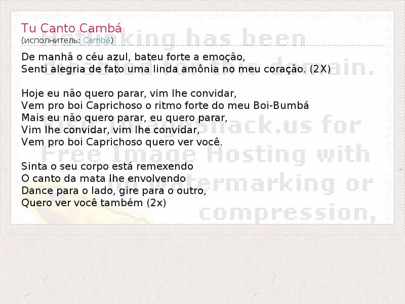 А как ты думаешь, о чем песня "Tu Canto Cambá" ?