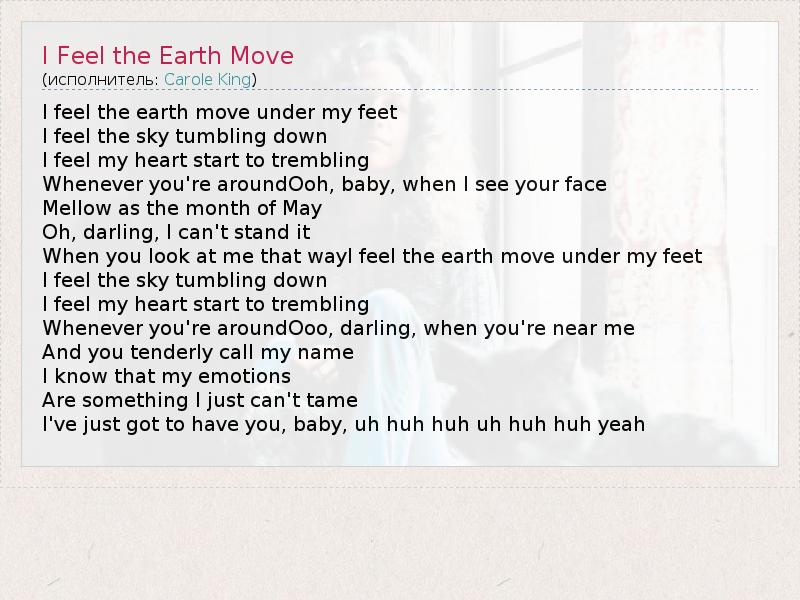 А как ты думаешь, о чем песня "I Feel the Earth Move" ?