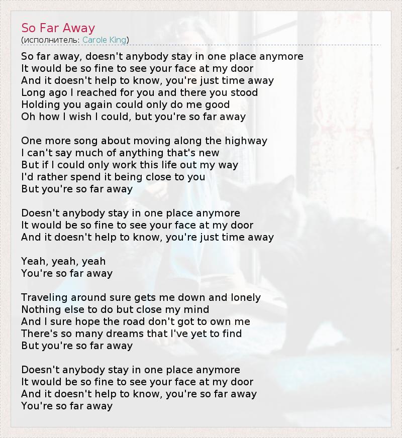 So far away, doesn't anybody stay in one place anymore