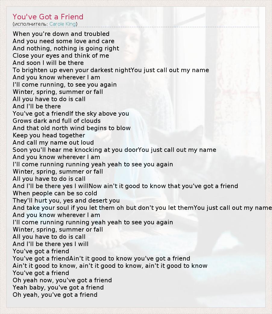 А как ты думаешь, о чем песня "You've Got a Friend" ?