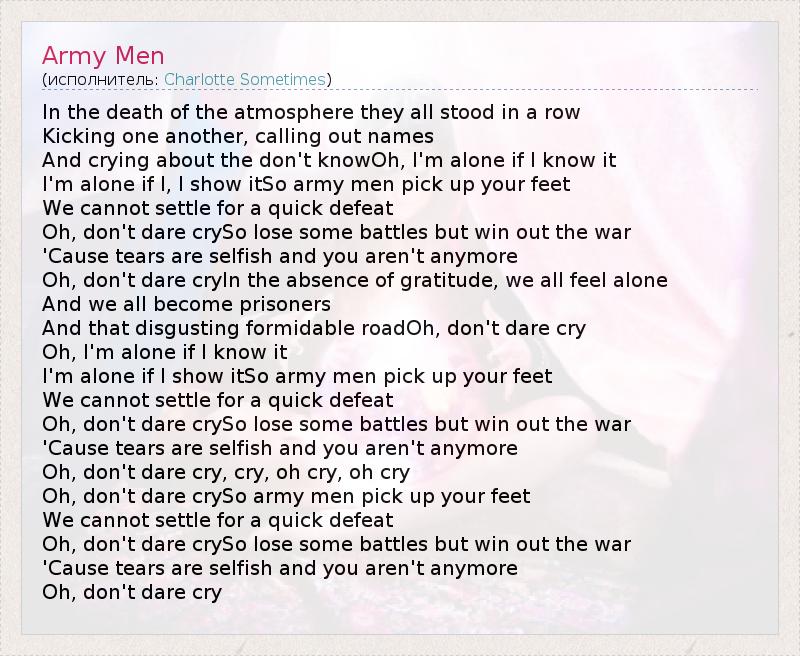 Oh, don't dare cryIn the absence of gratitude, we all feel alone