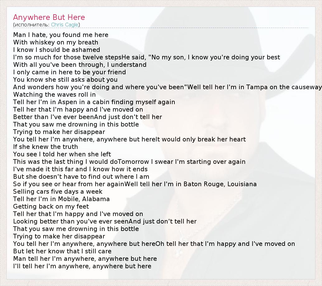 А как ты думаешь, о чем песня "Anywhere But Here" ?