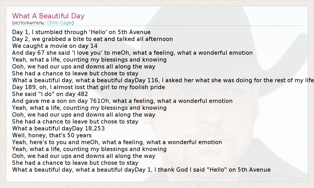 А как ты думаешь, о чем песня "What A Beautiful Day" ?