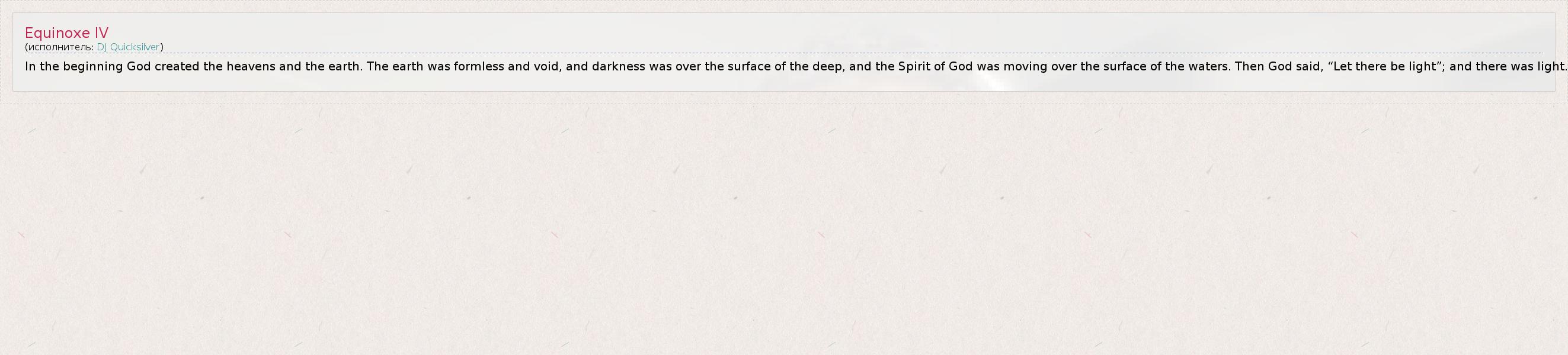 Это интересно:До того, как начать писать музыку, он увлекался горным велосипедом, серфингом и ходил в спортзалы. В общем, был помешан на спорте. Страсть к музыке у него появилась благодаря Jean Michel Jarre, Klaus Schulze и Kraftwerk. Позже Orhan Terzi устроился на работу в одну бельгийскую Dance-и Trance-студию, и музыка из увлечения превратилась в профессию. Первая композиция DJ Quicksilver "Bingo Bongo", которая вышла в начале 1996 года,... продолжение
