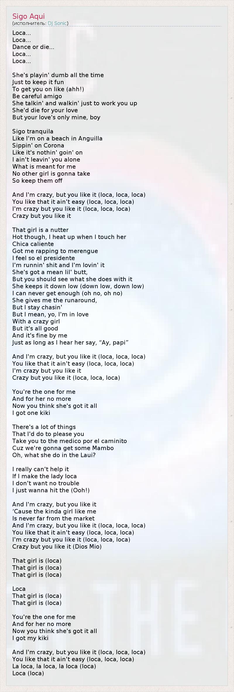 А как ты думаешь, о чем песня "Sigo Aqui" ?