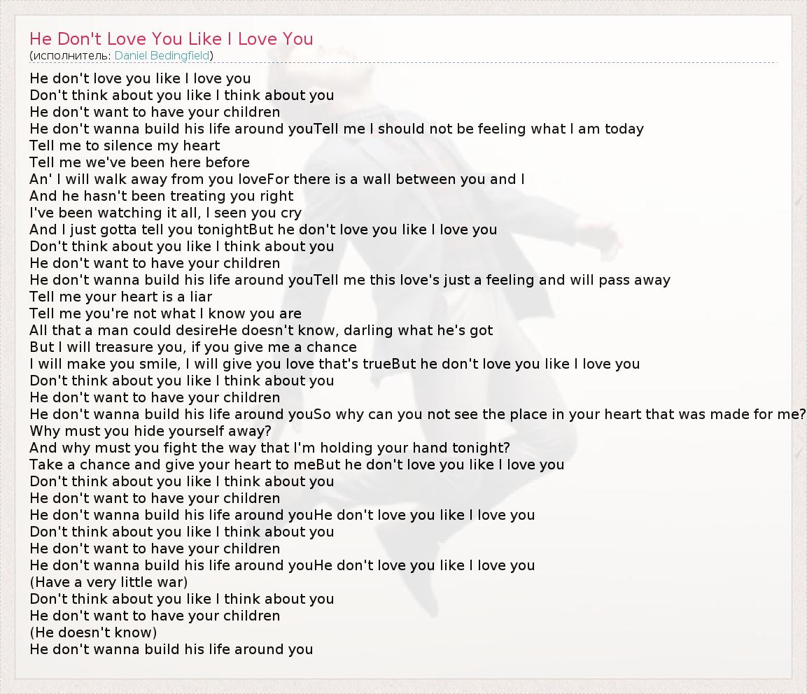 А как ты думаешь, о чем песня "He Don't Love You Like I Love You" ?