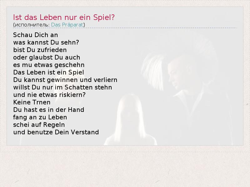 А как ты думаешь, о чем песня "Ist das Leben nur ein Spiel?" ?