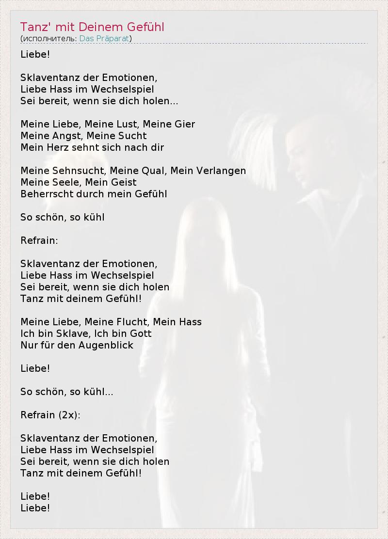 А как ты думаешь, о чем песня "Tanz' mit Deinem Gefühl" ?