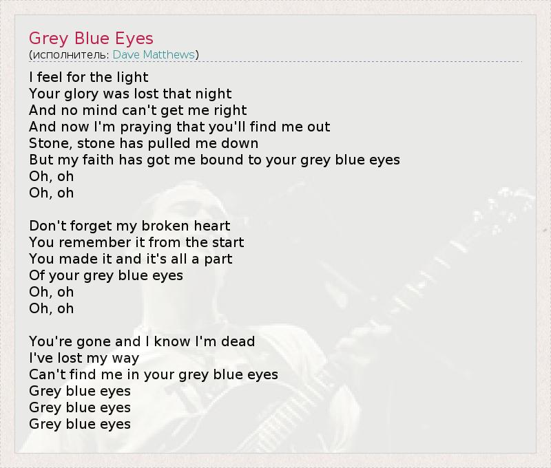 А как ты думаешь, о чем песня "Grey Blue Eyes" ?