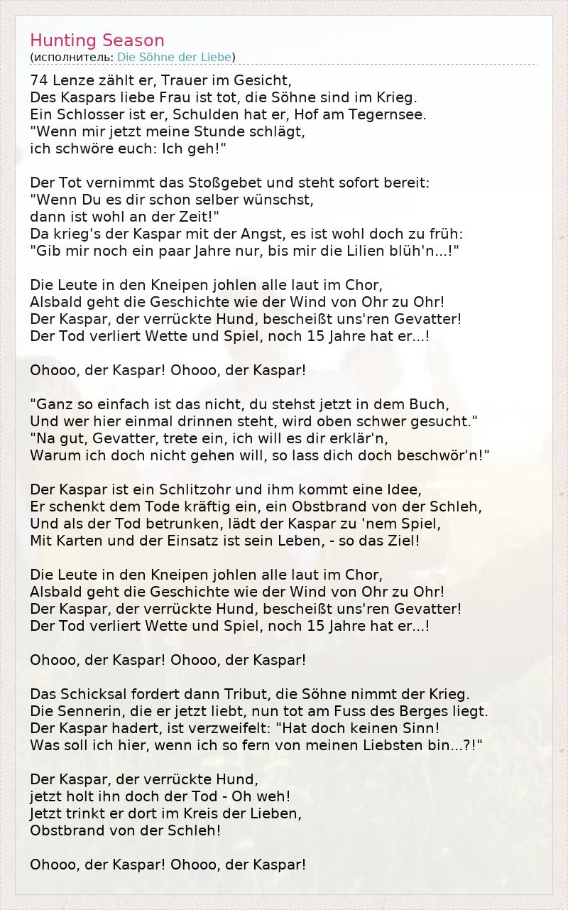 А как ты думаешь, о чем песня "Hunting Season" ?