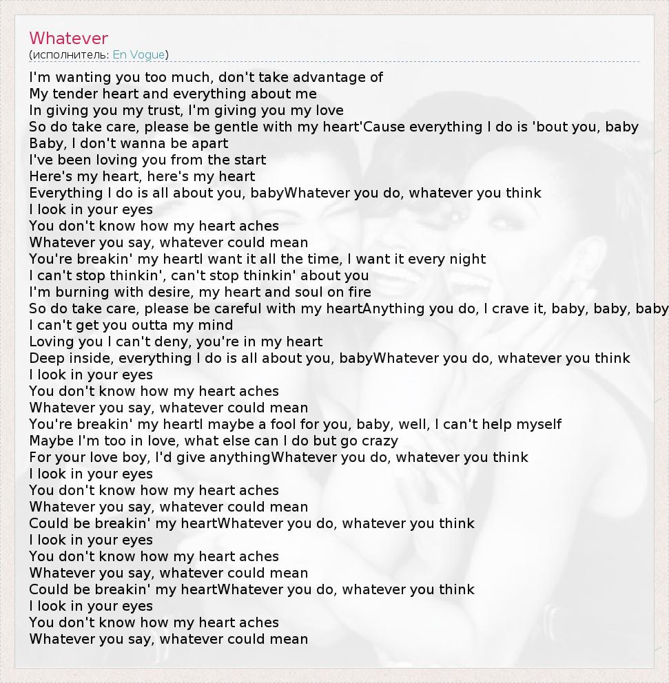 А как ты думаешь, о чем песня "Whatever" ?
