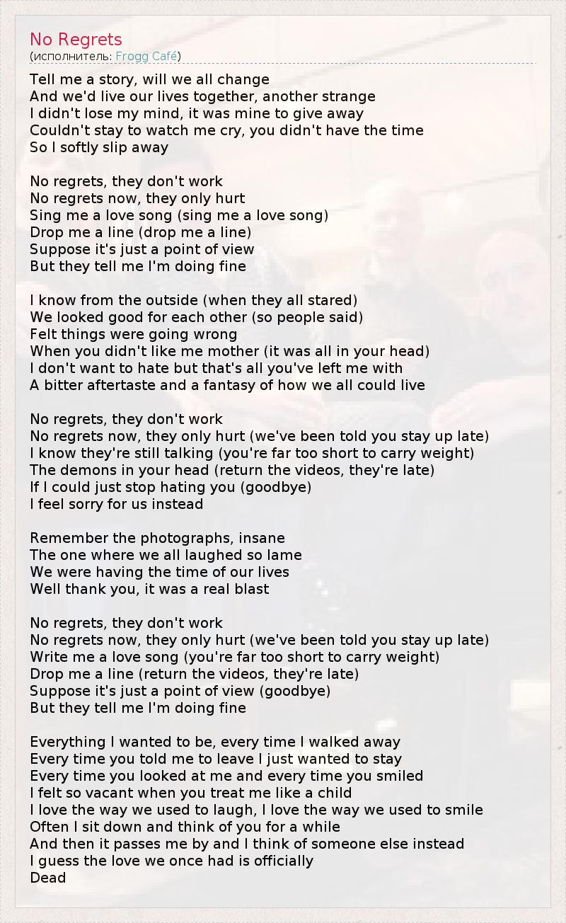 А как ты думаешь, о чем песня "No Regrets" ?