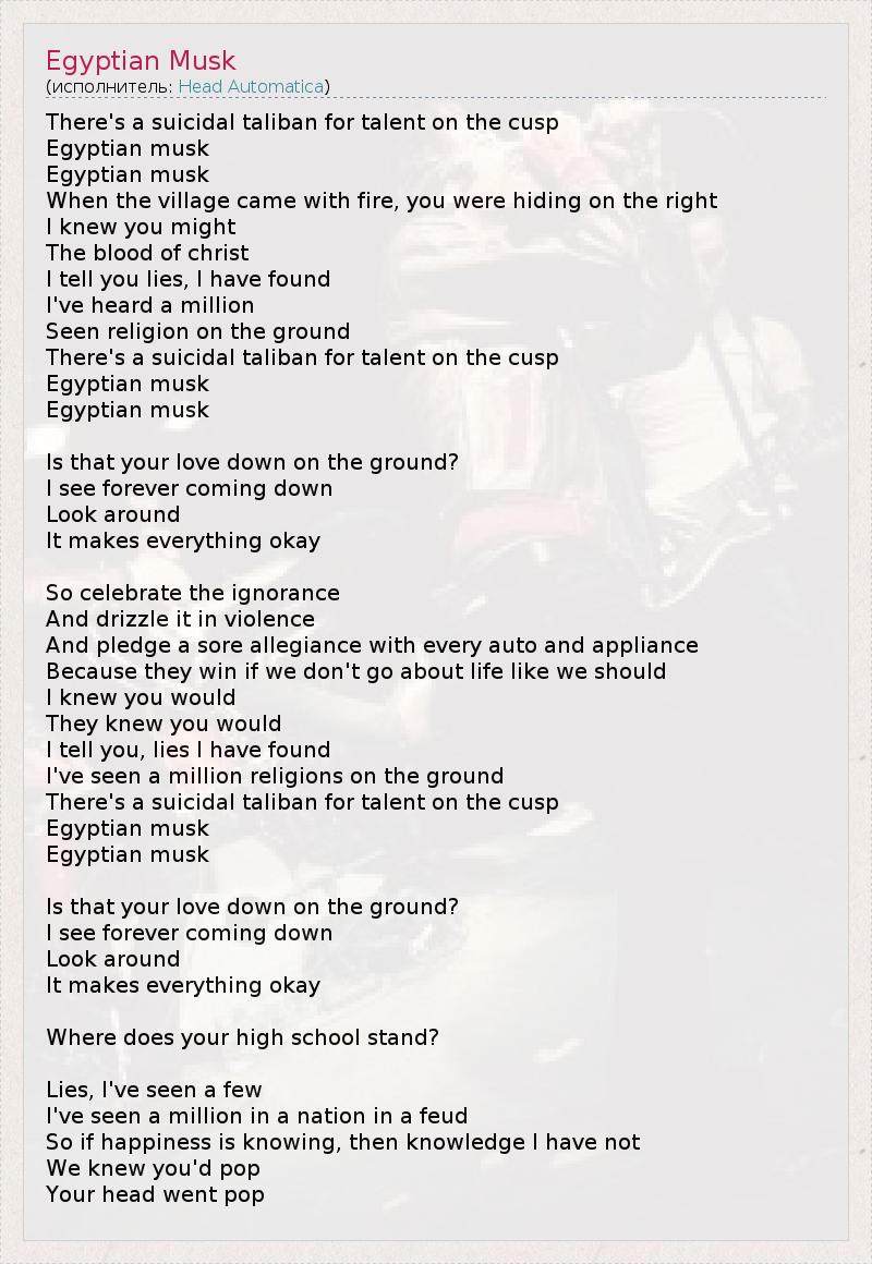 А как ты думаешь, о чем песня "Egyptian Musk" ?