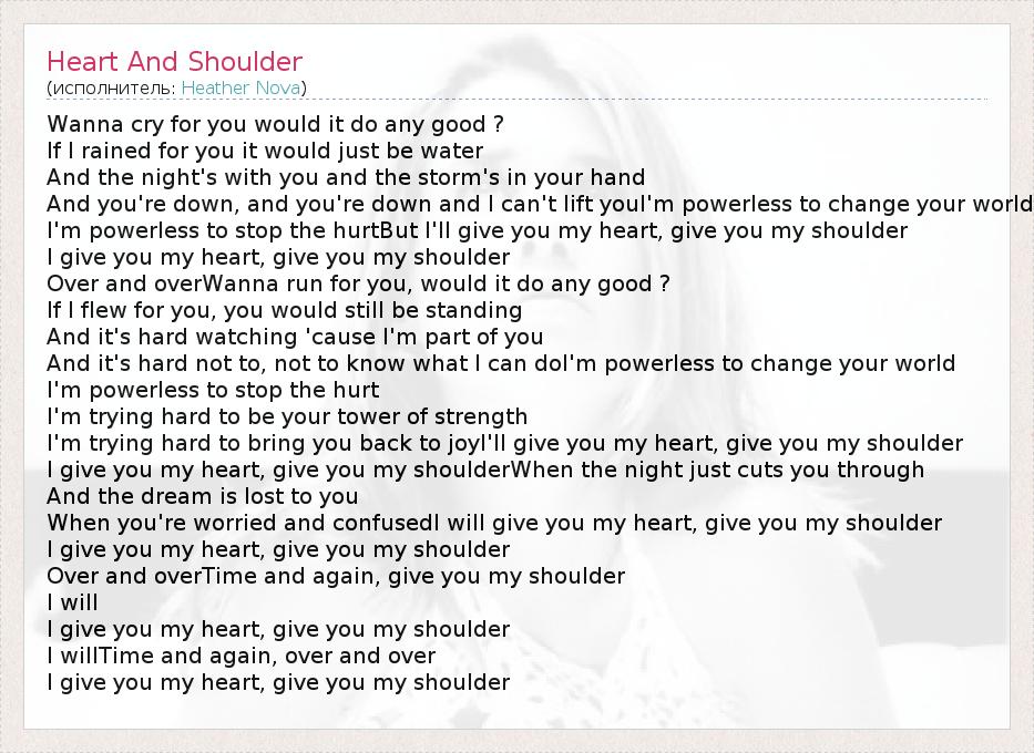 А как ты думаешь, о чем песня "Heart And Shoulder" ?