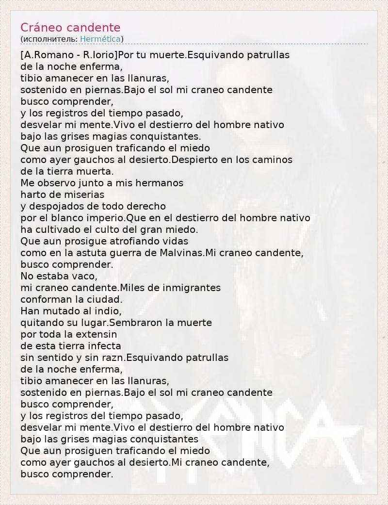 А как ты думаешь, о чем песня "Cráneo candente" ?