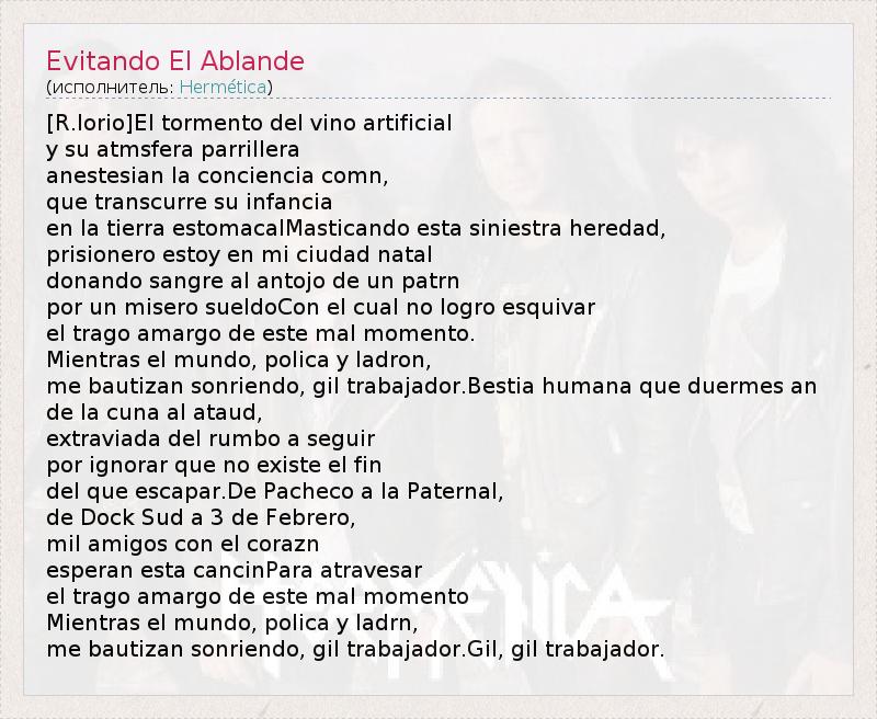 А как ты думаешь, о чем песня "Evitando El Ablande" ?