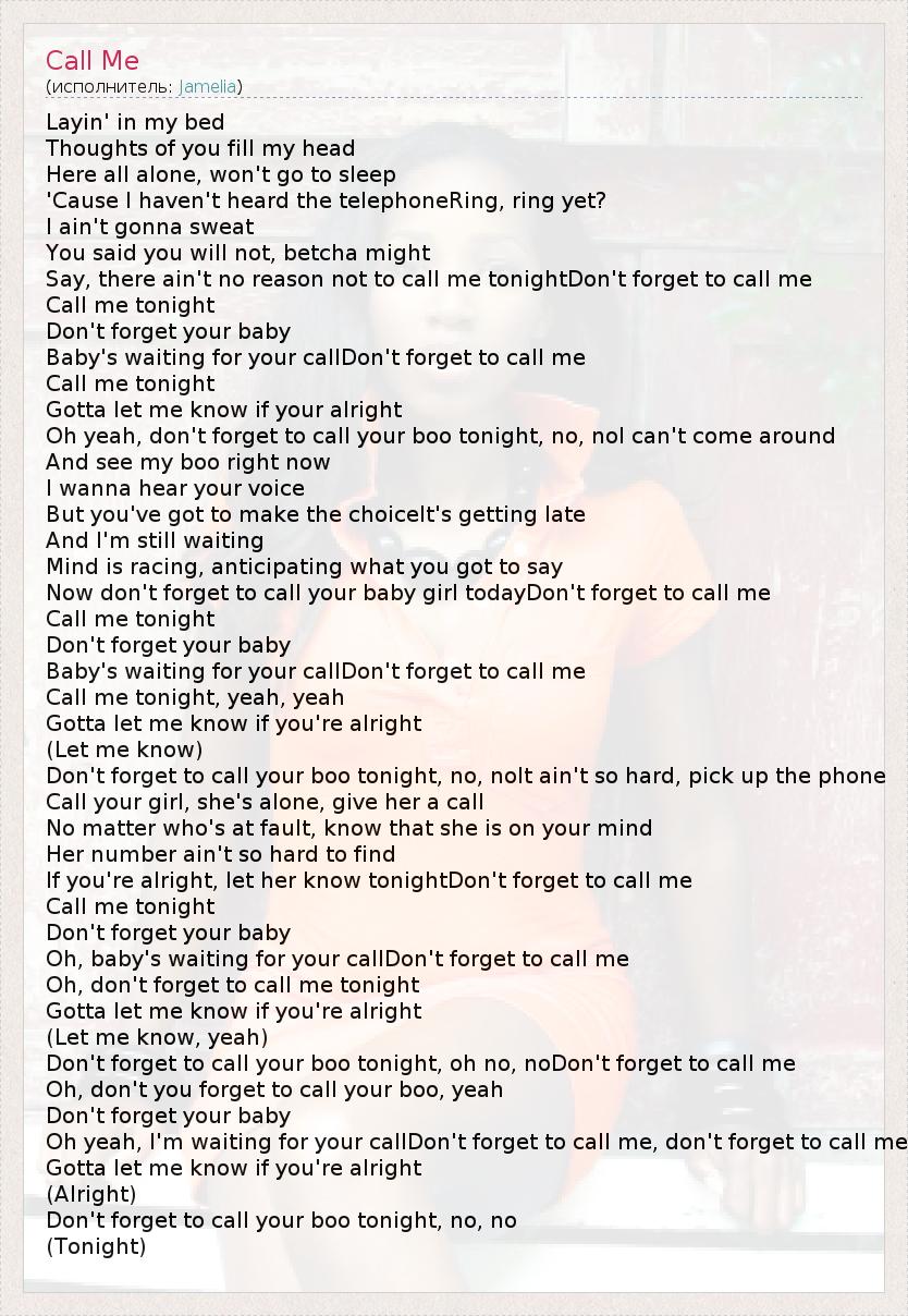 Baby's waiting for your callDon't forget to call me