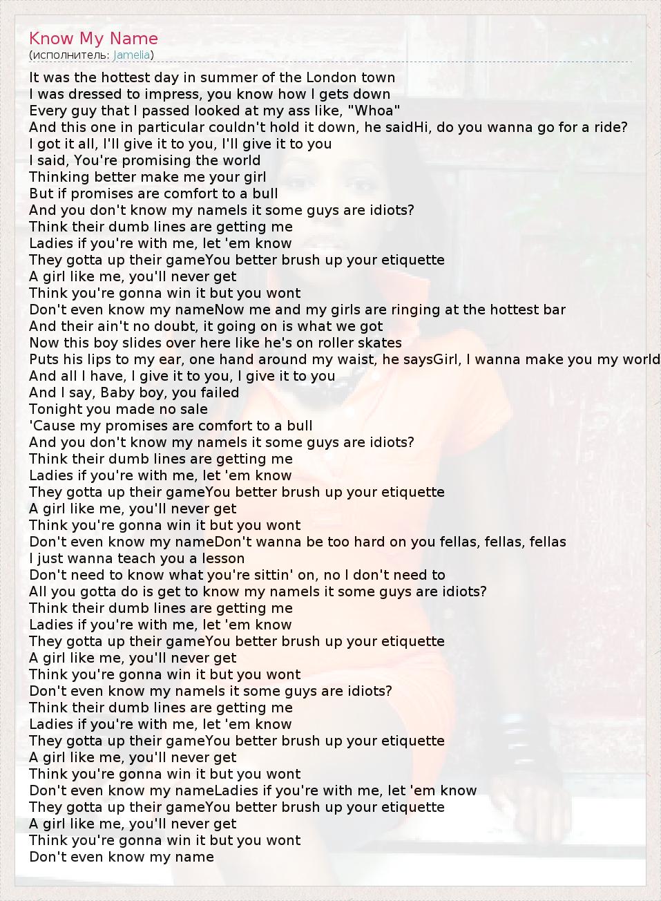 Don't even know my nameIs it some guys are idiots?