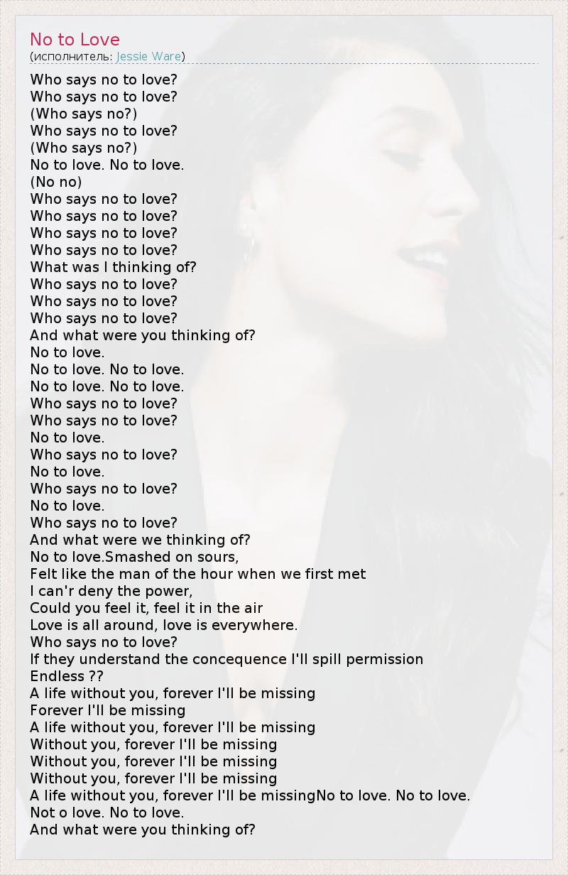 А как ты думаешь, о чем песня "No to Love" ?